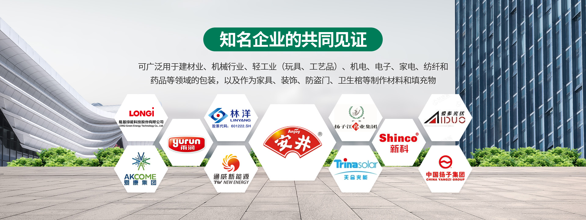 可廣泛用于建材業、機械行業、輕工業(玩具、工藝品)、機電、電子、家電、紡纖和藥品業等領域的包裝,以及作為家具、裝飾、防盜門、衛生棺等制作材料和填充物。